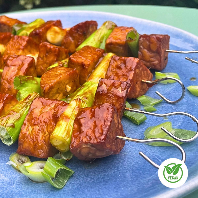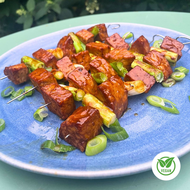 Marinated tempeh (fermented soya beans) in a classic mix of Japanese flavours, including; soy, sesame oil, sake, mirin and a blend of distinctive Japanese condiments and spices. Finished flavour is sweet and savoury, with a distinctively bintochan characteristic. Soft on the inside, and sticky on the outside.