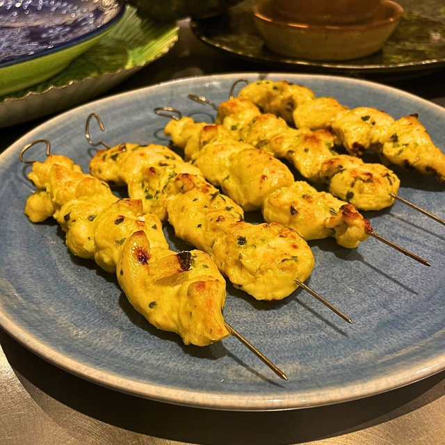 The invigorating smells from the streets of Bangkok are revisited here with classic Thai flavouring of chicken thigh or breast, using lemongrass, kaffir lime leaves, palm sugar, lime juice and chillis. Charcoal grilled or under a raging hot grill does the job!